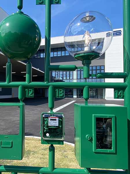 モチーフ:街灯(ポールライト)本プラモニュメントは、電気機器専門商社であるすみや電器の知見を活かし、実際の街灯を1/1 で忠実に再現しています。電球やメーターボックスなど、実際の街灯に使われる部材をパーツとしており、夜間には実際に点灯します。昼夜で異なる表情を見せ、来訪者の関心を惹きつけるデザインとなっています。